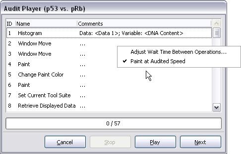 will show up and inform you of why an operation cannot be executed. Clicking the OK button in this dialog will close both it and the associated audit player.There is a right-click menu over the audit player: